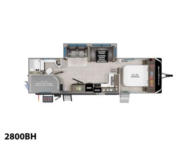 Where will you go with this Imagine travel trailer? The possibilities are endless! You can take your family on an exciting excursion because this trailer has enough sleeping space for everyone with a 60" x 80" queen bed in the private bedroom, a U-shaped dinette and tri-fold sofa in the main living area, and there is a set of 47" x 76" bunk beds with privacy curtains in the rear corner. You can come and go as you please with two entry doors, and the outdoor griddle and refrigerator will be fun to use when the weather is nice. The flip-up countertop extension will make it easier to prepare delicious home cooked meals and the shoe storage area helps to keep things neat and tidy.Just imagine leaving the world behind and secluding yourself away with your favorite people in your Grand Design Imagine travel trailer! The Imagine has been designed to enjoy extended season camping and includes a high-capacity furnace, a heated and enclosed underbelly with suspended tanks, a designated heat duct to the subfloor, and a high-density roof insulation with attic vent. You'll have maximum head room on the interior with 81" radius ceilings, and large panoramic windows to let in natural lighting. The exclusive drop-frame pass-through storage compartment is going to allow you to bring along lots of equipment, and the universal docking station is an all-in-one location for utilities and hook-ups. You'll also have oversized tank capacities so that you can fill and empty your tanks less often.We have 1 2800BH availableView InventorySpecifications