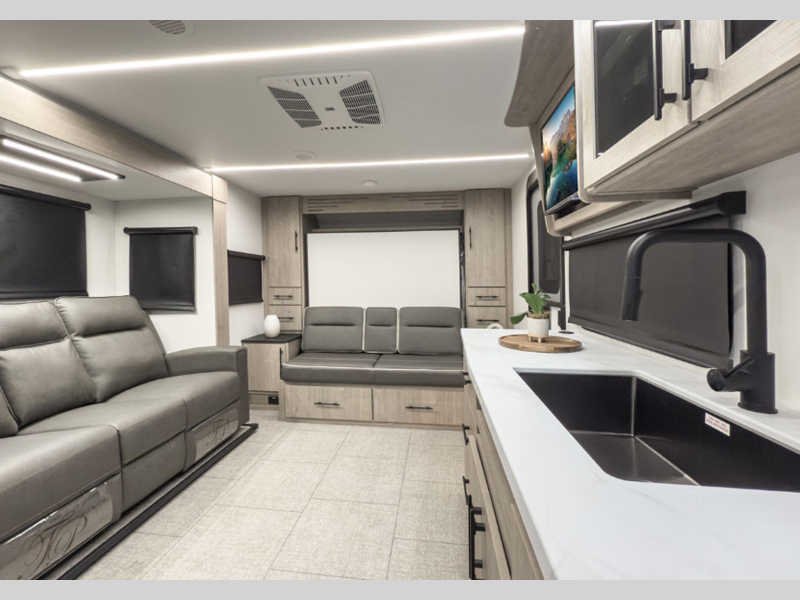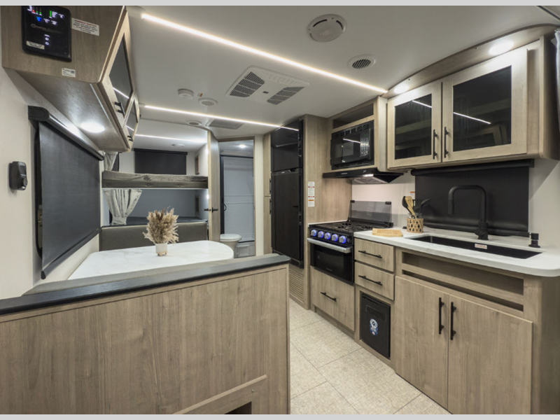 Sleeps 7 Slides 1 Length 24 ft 11 in Fresh Water Capacity 37 gals Grey Water Capacity 45 gals Black Water Capacity 37 gals Tire Size 14" Furnace BTU 25000 btu Number Of Bunks 2 Available Beds Murphy Refrigerator Type 12V Refrigerator Size 10 cu ft Cooktop Burners 3 Number of Awnings 1 LP Tank Capacity 20 lbs Water Heater Type On Demand Tankless AC BTU 15000 btu TV Info LR LED HDTV Awning Info 17' Electric w/LED Light Axle Count 2 Number of LP Tanks 2 Shower Type Walk-In Shower Electrical Service 30 amp Similar Floorplans