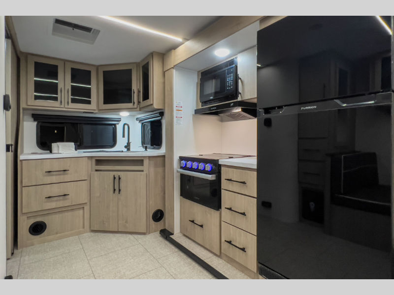Sleeps 3 Slides 1 Length 21 ft 11 in Ext Width 8 ft Ext Height 10 ft 5 in Int Height 6 ft 6 in Hitch Weight 517 lbs GVWR 6395 lbs Dry Weight 4921 lbs Fresh Water Capacity 37 gals Grey Water Capacity 45 gals Black Water Capacity 37 gals Tire Size ST205/75R14LRD Furnace BTU 25000 btu Available Beds Murphy Queen Refrigerator Type 12V Refrigerator Size 10 cu ft Cooktop Burners 3 Number of Awnings 1 LP Tank Capacity 20 lbs Water Heater Type On Demand Tankless AC BTU 15000 btu TV Info LR LED HDTV Awning Info 14' Electric w/LED Light Axle Count 2 Number of LP Tanks 2 Shower Type Walk-In Shower Electrical Service 30 amp Similar Floorplans