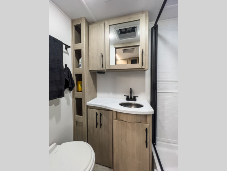 Sleeps 5 Slides 2 Length 25 ft 4 in Ext Width 8 ft Ext Height 10 ft 10 in Int Height 6 ft 6 in Hitch Weight 616 lbs GVWR 6995 lbs Dry Weight 5698 lbs Fresh Water Capacity 37 gals Grey Water Capacity 45 gals Black Water Capacity 37 gals Tire Size ST205/75R14LRD Furnace BTU 25000 btu Number Of Bunks 2 Available Beds Murphy Refrigerator Type 12V Refrigerator Size 10 cu ft Cooktop Burners 3 Number of Awnings 1 LP Tank Capacity 20 lbs Water Heater Type On Demand Tankless AC BTU 15000 btu TV Info LR LED HDTV Awning Info 18' Electric w/LED Light Axle Count 2 Number of LP Tanks 2 Shower Type Walk-In Shower Electrical Service 30 amp Similar Floorplans