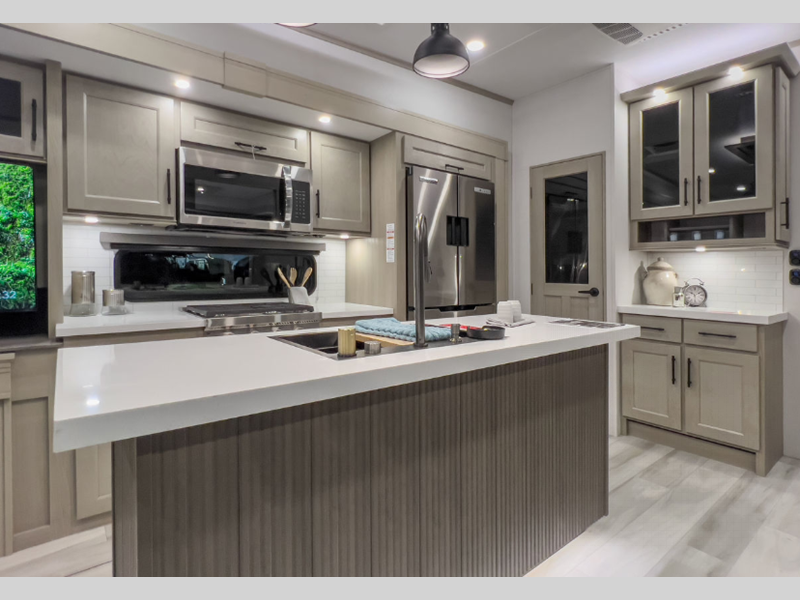 Grand Design Influence fifth wheel 3203GK highlights: Rear Kitchen Triple Slides ... more about Influence 3203GK