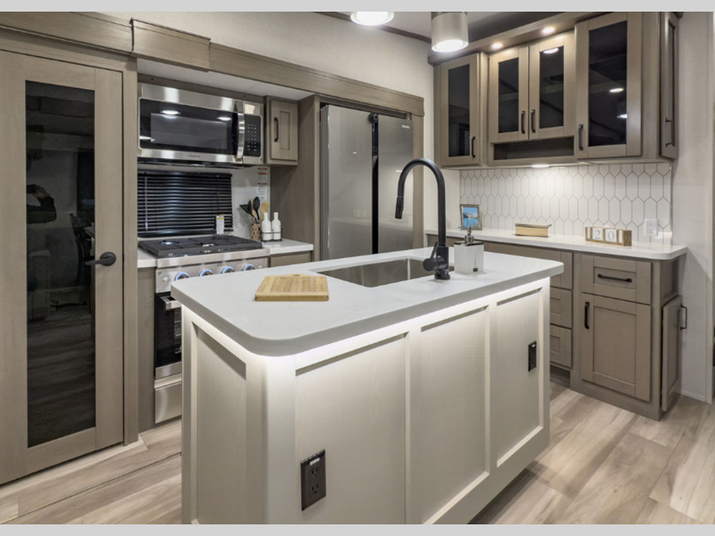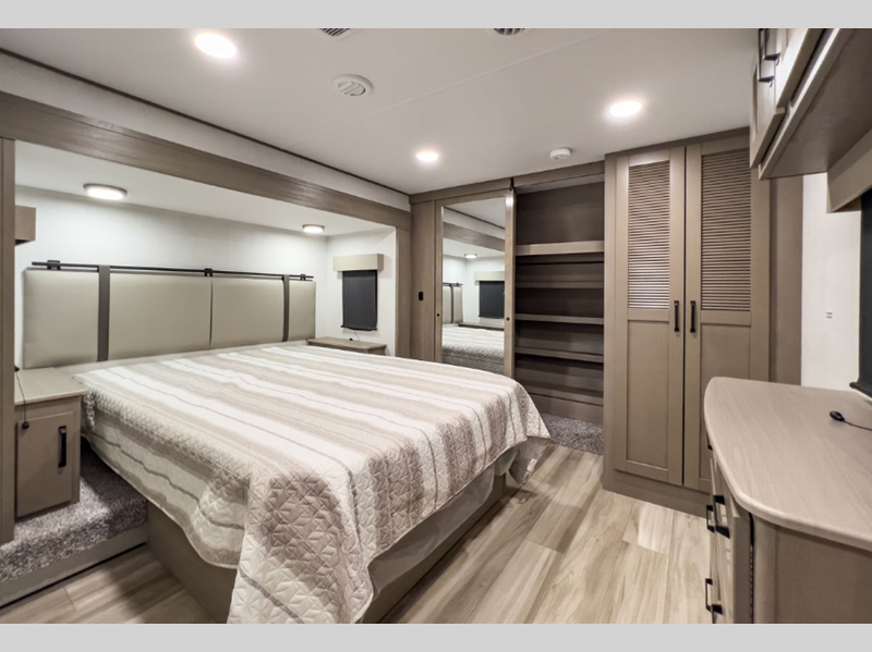 Sleeps 5 Slides 3 Length 35 ft 7 in Ext Width 8 ft Ext Height 12 ft 6 in Hitch Weight 2300 lbs GVWR 13995 lbs Dry Weight 11200 lbs Fresh Water Capacity 74 gals Grey Water Capacity 87 gals Black Water Capacity 47 gals Tire Size ST235/80R16RLE Furnace BTU 35000 btu Available Beds Queen Refrigerator Type 12V Refrigerator Size 16 cu ft Cooktop Burners 3 Shower Size 30" x 48" Number of Awnings 2 LP Tank Capacity 30 lbs Water Heater Type On Demand Tankless AC BTU 15000 btu TV Info LR 40" TV Awning Info 16' & 10'6" One-Touch Electric LED Axle Count 2 Washer/Dryer Available Yes Number of LP Tanks 2 Shower Type Shower w/Seat Electrical Service 50 amp Similar Floorplans