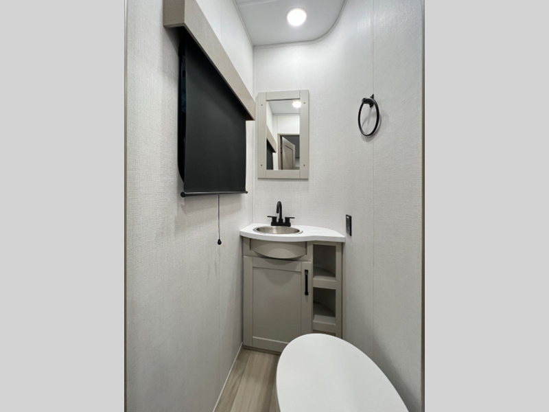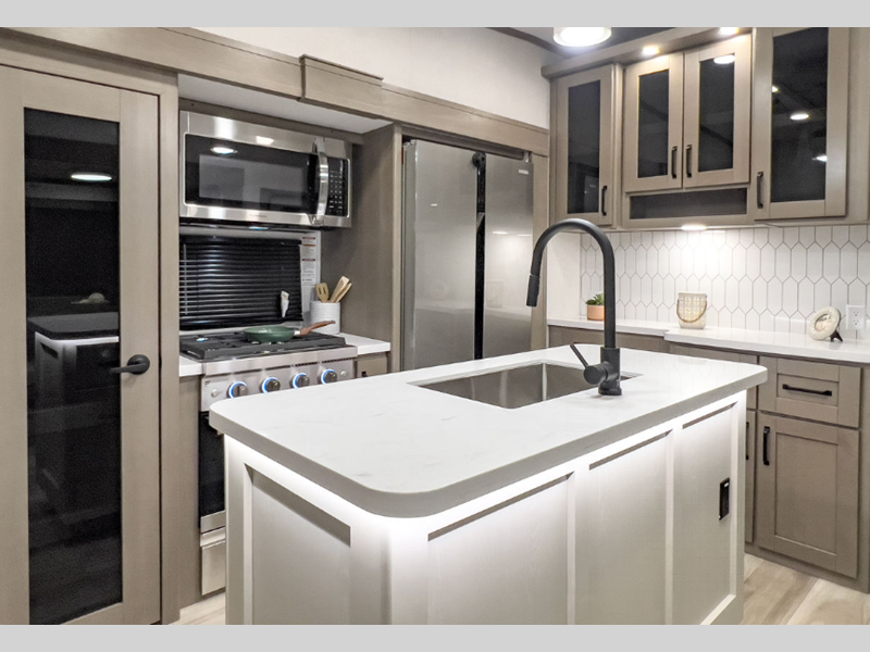Reflection is built with the Artic 4-Season Protection package which provides a 35K BTU high capacity furnace, double insulated roof and front cap, a heated and underbelly with circulating heat, and 12V heat pads on the holding tanks to mention a few features that allow you to travel during any climate. The interior offers residential cabinetry, a deep seated stainless steel kitchen sink in the gourmet kitchen, a spacious shower with a glass door, and ductless flooring in the living area to name a few comforts.