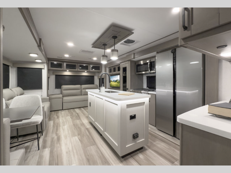 Sleeps 2 Slides 2 Length 35 ft 9 in Ext Width 8 ft Ext Height 11 ft 11 in Hitch Weight 1110 lbs GVWR 10995 lbs Dry Weight 8800 lbs Fresh Water Capacity 54 gals Grey Water Capacity 71 gals Black Water Capacity 39 gals Tire Size ST225/75R15LRE Furnace BTU 35000 btu Available Beds Queen Refrigerator Type 12V Refrigerator Size 16 cu ft Cooktop Burners 3 Shower Size 30" x 48" Number of Awnings 1 LP Tank Capacity 30 lbs Water Heater Type On Demand Tankless AC BTU 15000 btu TV Info LR 40" HD LED Awning Info 20' One-Touch Electric LED Axle Count 2 Washer/Dryer Available Yes Number of LP Tanks 2 Shower Type Standard Electrical Service 50 amp Similar Floorplans
