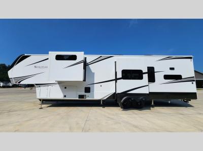Sleeps 6 Slides 4 Length 41 ft 8 in Ext Width 8 ft 5 in Ext Height 13 ft 5 in Int Height 8 ft 1 in Exterior Color Standard Graphics or Aurora, Midnight, Pearl Full-Body Paint Options Hitch Weight 3290 lbs GVWR 19000 lbs Dry Weight 15494 lbs Fresh Water Capacity 81 gals Grey Water Capacity 106 gals Black Water Capacity 106 gals Tire Size ST215/75R 17.5 LRH Furnace BTU 35000 btu Available Beds Queen Refrigerator Type 12V Refrigerator Size 20 cu ft Cooktop Burners 4 Shower Size 48" x 30" Number of Awnings 2 Axle Weight 8000 lbs LP Tank Capacity 30 lbs. Water Heater Type Tankless On Demand AC BTU 15000 btu TV Info LR LED Smart TV Awning Info 14' 5" & 20' Power w/Integrated LED Lighting Axle Count 2 Washer/Dryer Available Yes Number of LP Tanks 2 Shower Type Shower w/Seat Electrical Service 50 amp Similar Fifth Wheel Floorplans