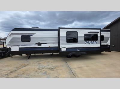 If you're looking for family-fun adventures then you need one of these Palomino Puma fifth wheels or travel trailers! They are built rugged, easy to tow, and jam packed with features. The Darco wrapped underbelly will protect your units vitals and the AlphaPly roofing membrane covers it. They also have new aluminum wheels and a powder coated steel I-beam frame. Inside, the Congoleum linoleum will be easy to keep clean, and the night roller shades will provide privacy when it's time to turn in. You'll also enjoy an electric awning with an LED light strip plus an AM/FM/Bluetooth stereo and two outside speakers to keep the party going!