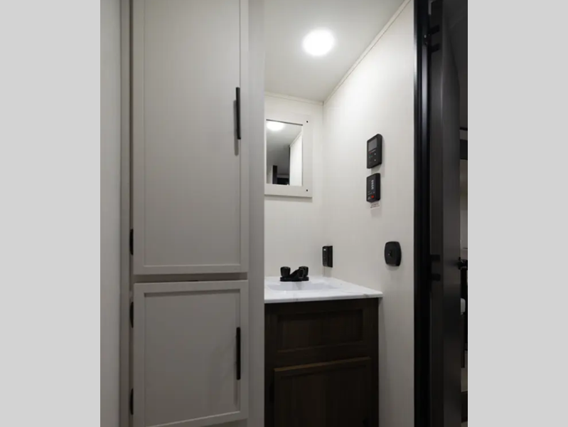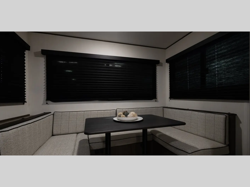 Each is built with an aerodynamic smooth front metal, a fully walkable roof, and automotive grade exterior graphics. All of these construction features will ensure a durable and long-lasting trailer. You will love the seamless pressed countertop inside, along with blackout shades, a large farmhouse one basin sink, and many more comforts!