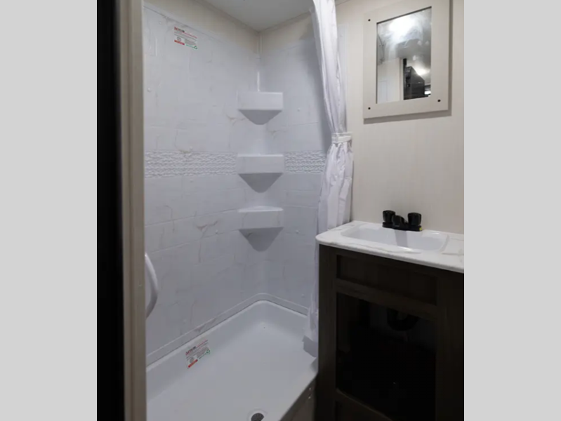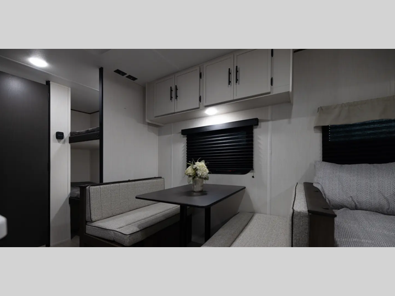 Sleeps 5 Slides 1 Length 22 ft 5 in Ext Width 7 ft 4 in Ext Height 10 ft 10 in Hitch Weight 565 lbs Dry Weight 4034 lbs Cargo Capacity 931 lbs Fresh Water Capacity 42 gals Grey Water Capacity 34 gals Black Water Capacity 34 gals Number Of Bunks 2 Available Beds Camp Queen Bed Refrigerator Type 12V Refrigerator Size 10.6 cu ft Cooktop Burners 2 Number of Awnings 1 Water Heater Type Tankless On Demand AC BTU 13500 btu Awning Info 10' Power Axle Count 1 Shower Type Standard Electrical Service 30 amp Similar Floorplans