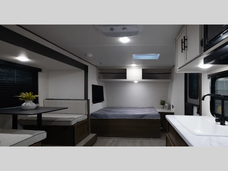 Sleeps 3 Slides 1 Length 20 ft 9 in Ext Width 8 ft Ext Height 10 ft 8 in Hitch Weight 395 lbs Dry Weight 3884 lbs Cargo Capacity 911 lbs Fresh Water Capacity 42 gals Grey Water Capacity 34 gals Black Water Capacity 34 gals Available Beds Camp Queen Bed Refrigerator Type 12V Refrigerator Size 10.6 cu ft Cooktop Burners 2 Number of Awnings 1 Water Heater Type Tankless On Demand AC BTU 13500 btu Awning Info 10' Power Axle Count 1 Shower Type Standard Electrical Service 30 amp Similar Floorplans